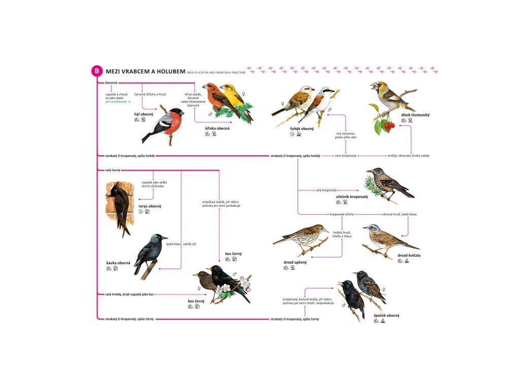 Tento klíč obsahuje šedesát druhů ptáků, které se v naší přírodě vyskytují nejčastěji. Pomůže vám je rychle a jednoduše rozeznat. Určíte je postupně podle jednoduchých rozlišovacích znaků, možná někdy rovnou podle obrázku. Pro lepší pozorování přibalte ještě dalekohled a můžete vyrazit do terénu!