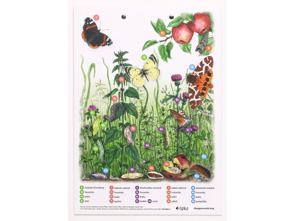 Obrázková podložka s klipem ze života motýlů. Nádherné ilustrace představují mimo pestrých motýlů i jejich živné rostliny, housenky a kukly. Ať jste na balkoně, terase, v zahradě či na výletě, všude můžete zaznamenat své myšlenky a nápady. Podložka je vhodnou pomůckou pro všechny, kteří „neposedí“ a rádi se vzdělávají venku.